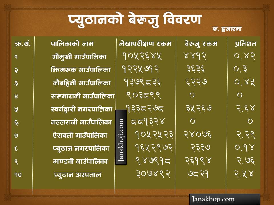 प्यूठानका स्थानीय तहमा बेरुजुका चाङ