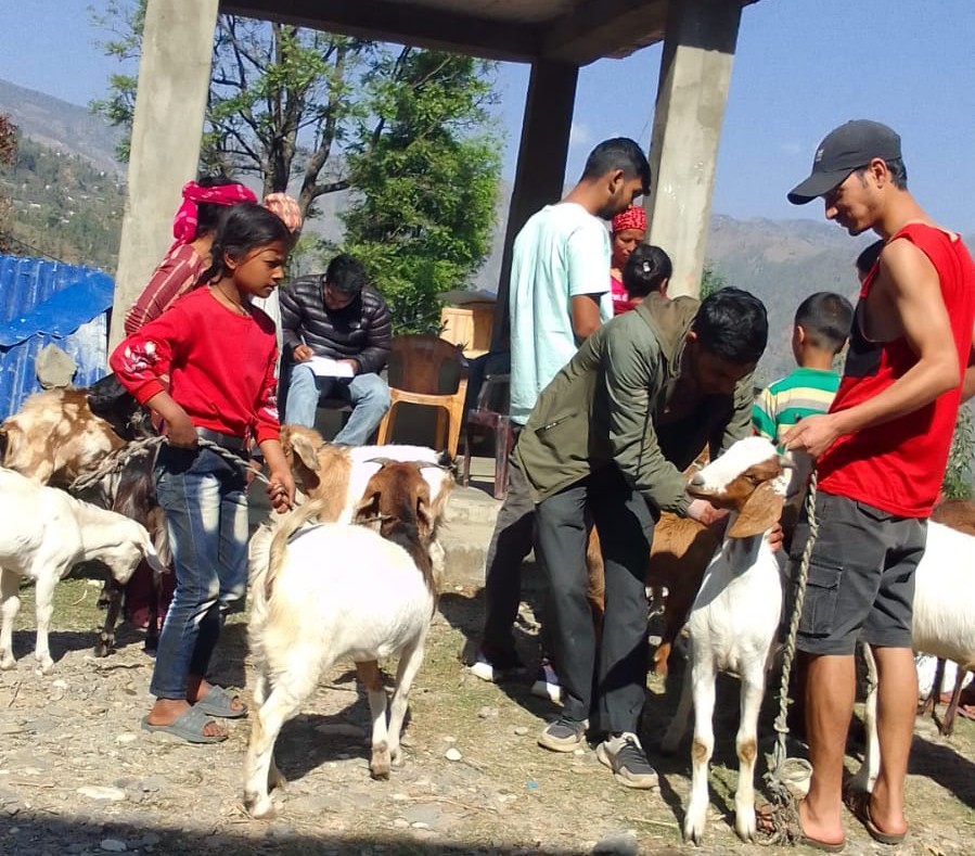 गौमुखीका बोका बाख्रालाई पी.पी.आर खोप लगाईदै