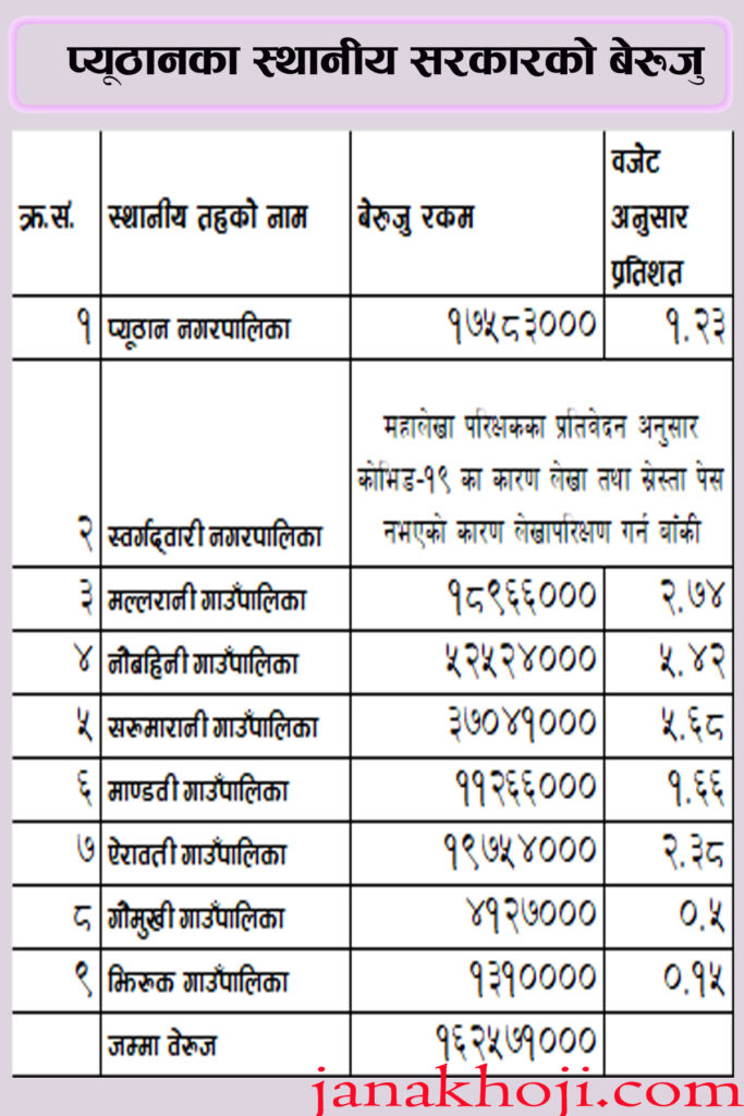 बेरुजुको चुङगलमा प्यूठानका स्थानीय सरकार